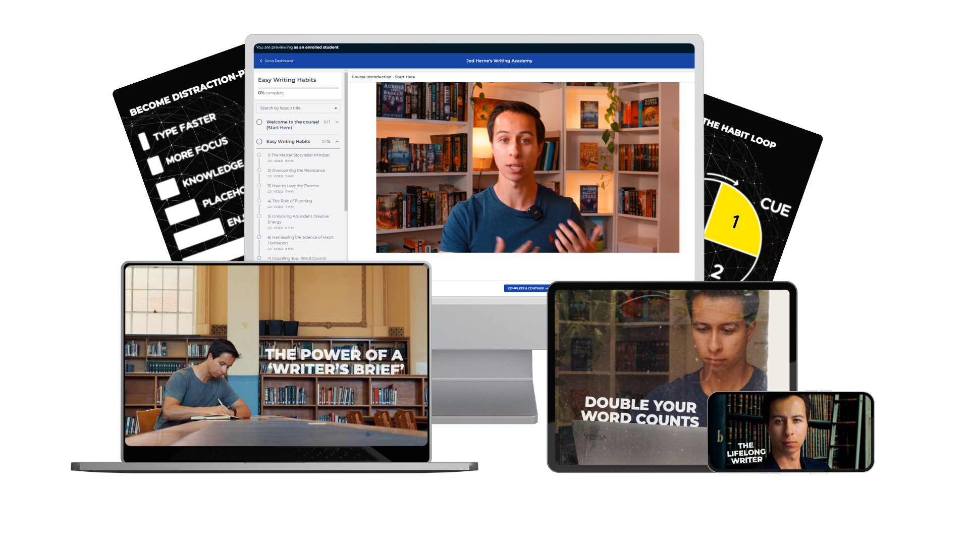 Easy Writing Habits is a self-paced video course designed to help you build a world-class writing routine in the quickest time possible.This course will give you a precise, step-by-step system - a series of simple, tangible actions which will dramatically improve your productivity and quality as a writer.Best of all, the course is designed to teach you this skill as quickly as possible.Most students will be able to complete the course and start seeing the immediate benefits within 1-2 weeks (or even quicker if you like to binge videos like me).Inside the course, you’ll learn: