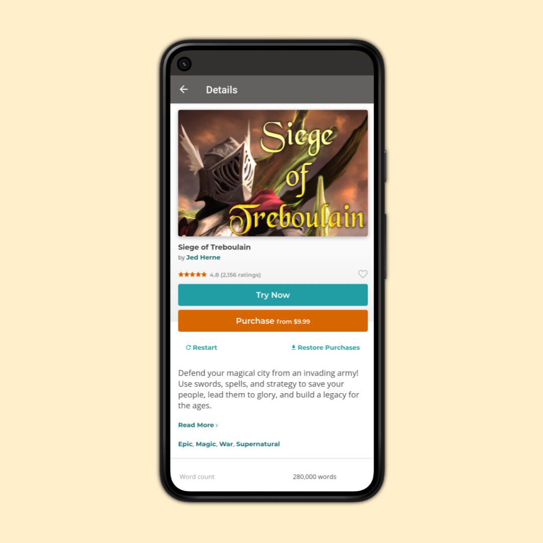 After The Thunder Heist, I took on my most ambitious project yet: an interactive fiction video game (sort of like a massive choose-your-own-adventure book) for Choice of Games.Siege of Treboulain clocked in around 280,000 words. It quickly became one of Choice of Games’ bestselling titles, with over 2,150+ reviews.